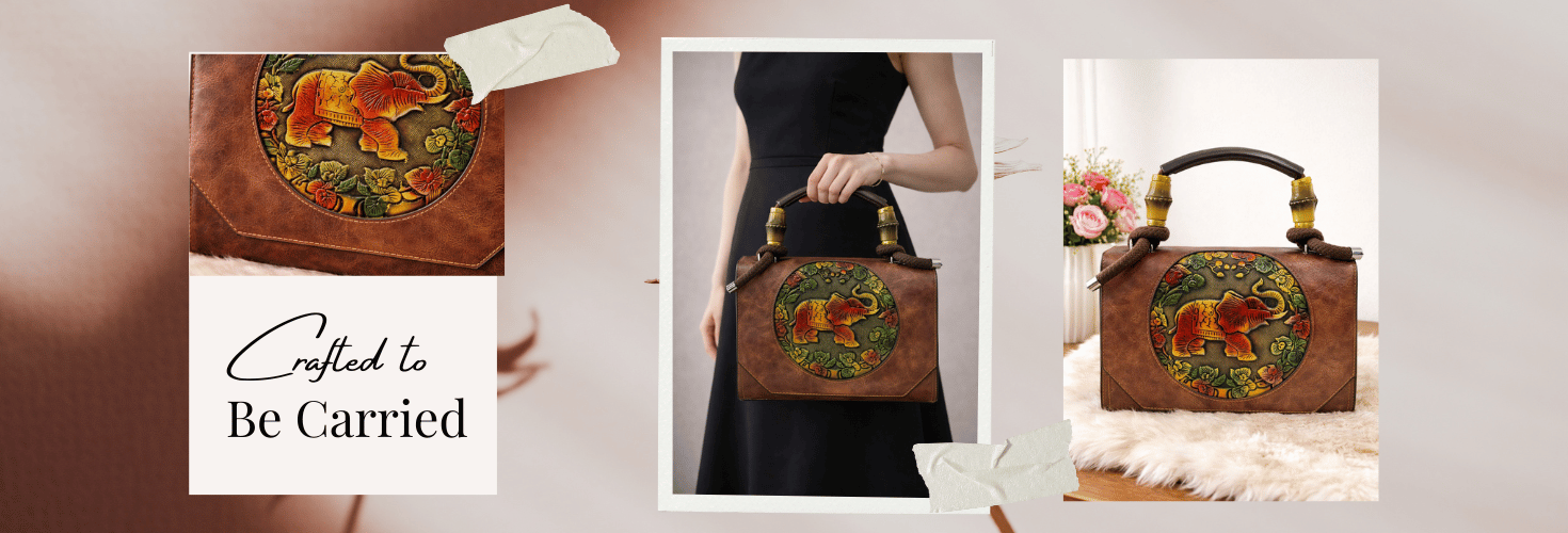 Heritage Elephant Art Handbag – Handcrafted Statement Top-Handle Bag